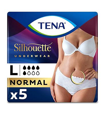 TENA Silhouette Plus Low Waist, 30 pairs of Incontinence Pants (10 x 3 Packs) for Moderate to Heavy Bladder Weakness for Women, Designed for Stylish Protection, White, Large, Fits Waist 95cm - 125cm