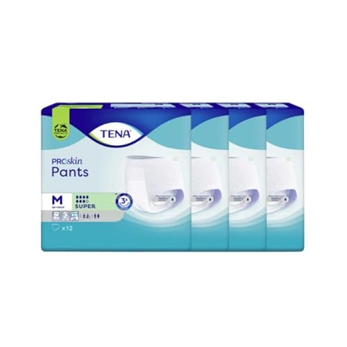 TENA Pants Super, 48 pairs of Unisex Incontinence Pants (4 x 12 packs) for Women and Men with Heavy Bladder Weakness, Medium