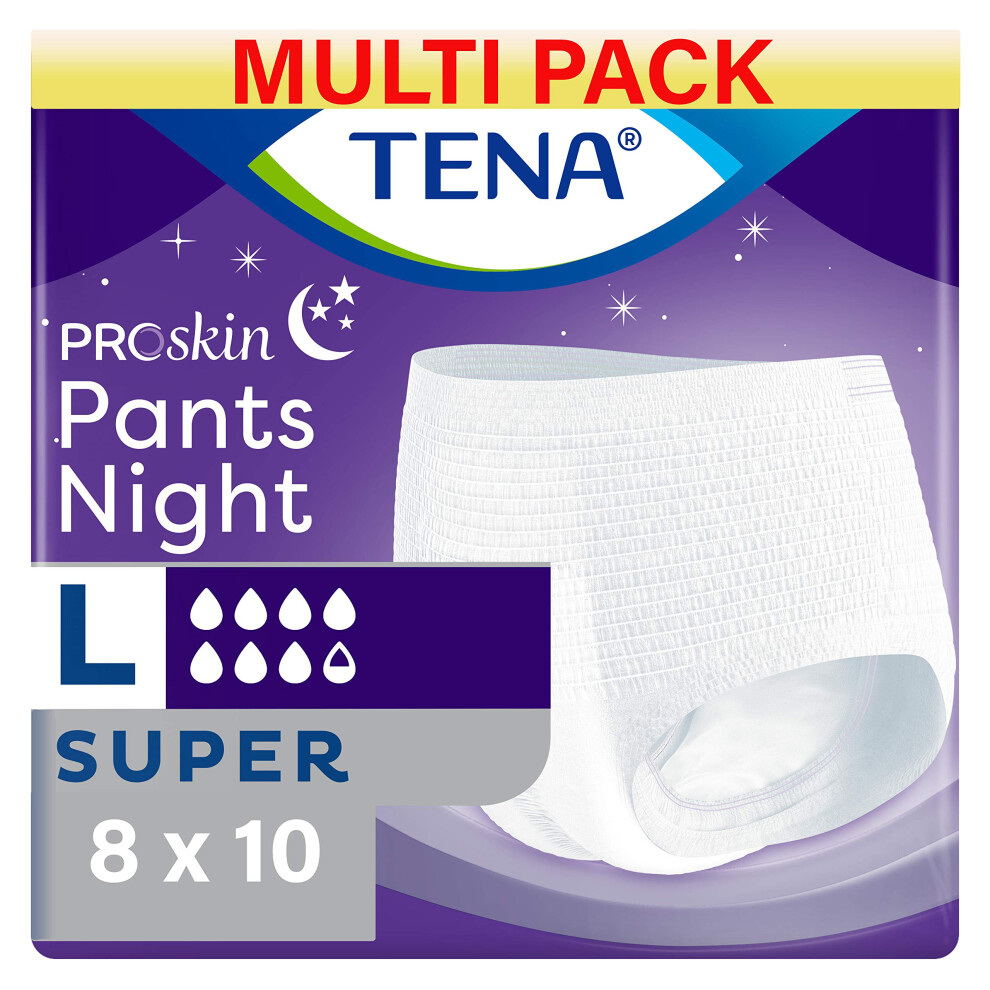 TENA Pants Night Super - Medium - 8 Packs of 10 - Multi Pack Incontinence Pants