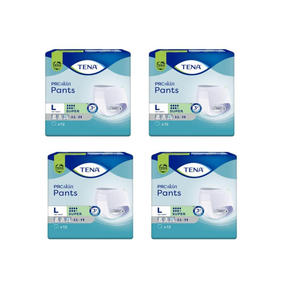 TENA Pants Super, 48 pairs of Unisex Incontinence Pants (4 x 12 packs) for Women and Men with Heavy Bladder Weakness, Size Large