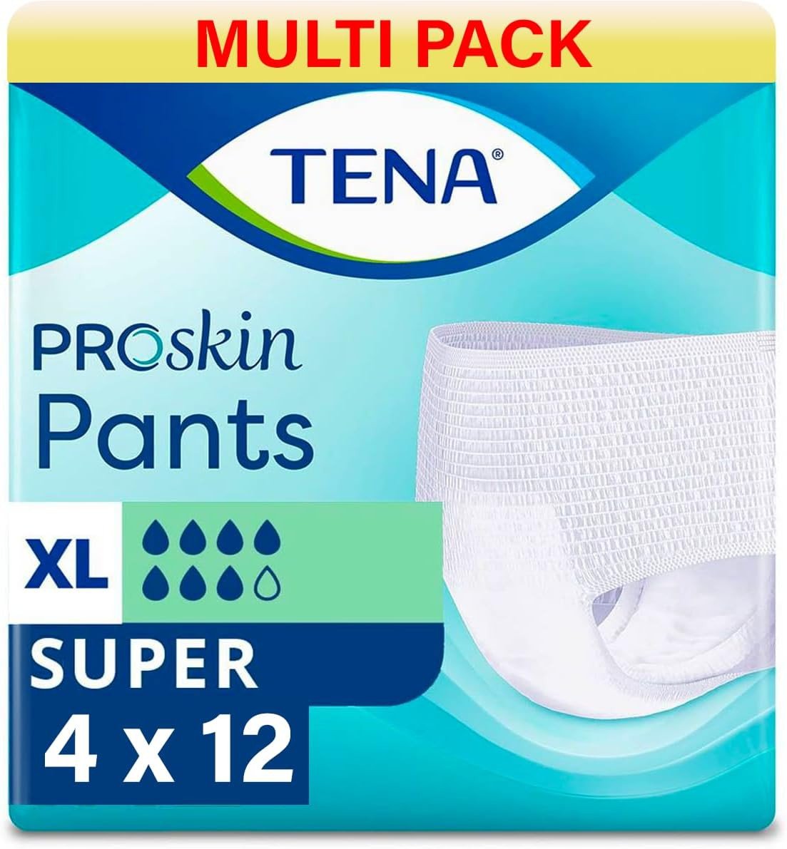 TENA Pants Super | Size Extra Large | 7 Drops | Incontinence Pants | 4 Pack of 12