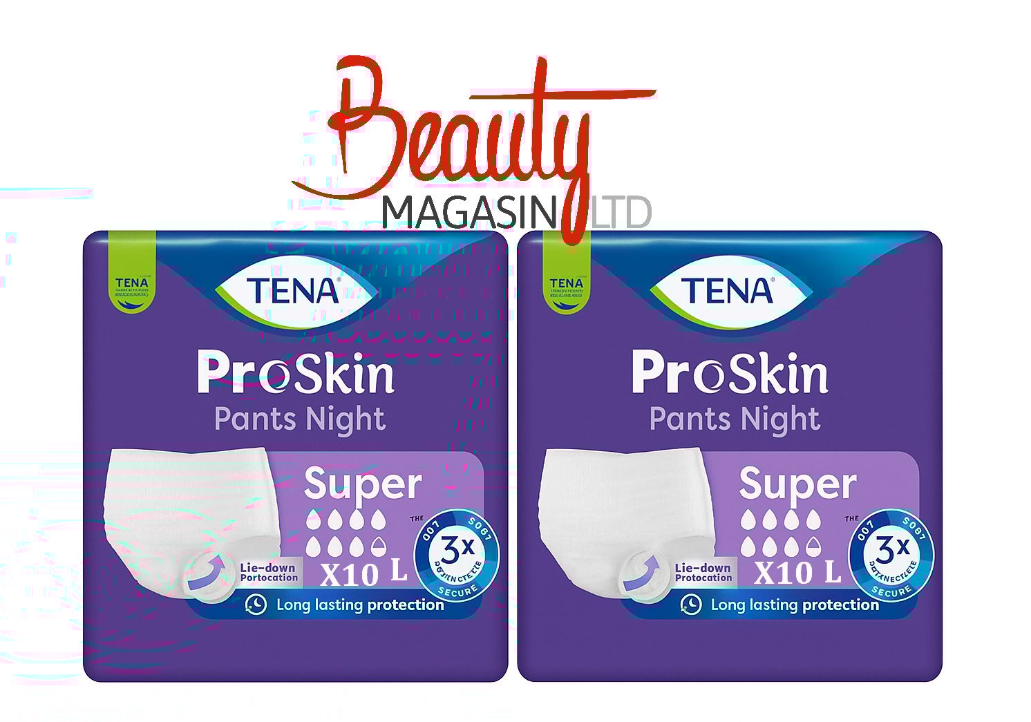 TENA ProSkin Pants Night Super - Large - 2 Packs of 10 - Total 20 Pants - 2100ml