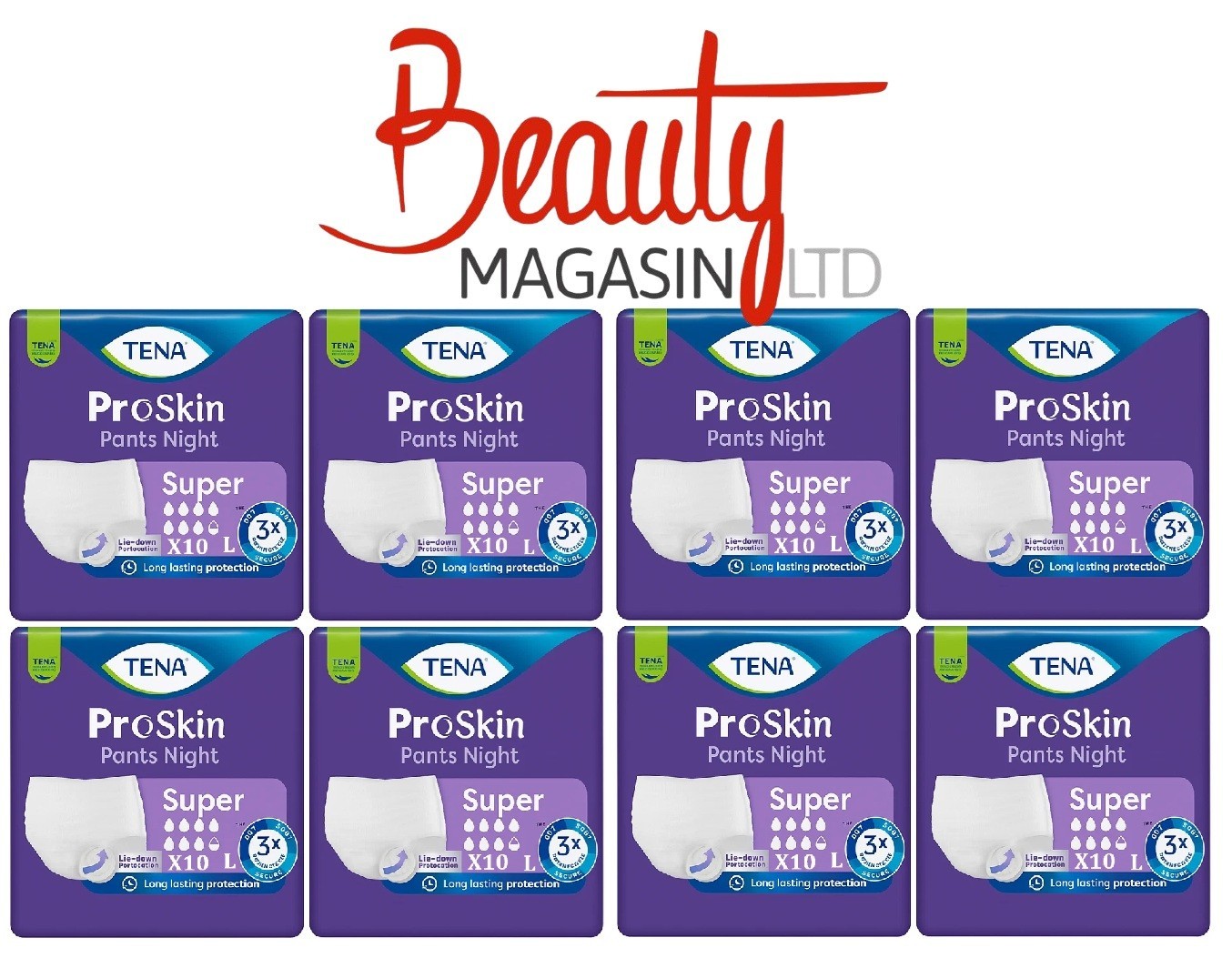 8x TENA ProSkin Pants Night Super Incontinence Pants - Large - Pack of 10