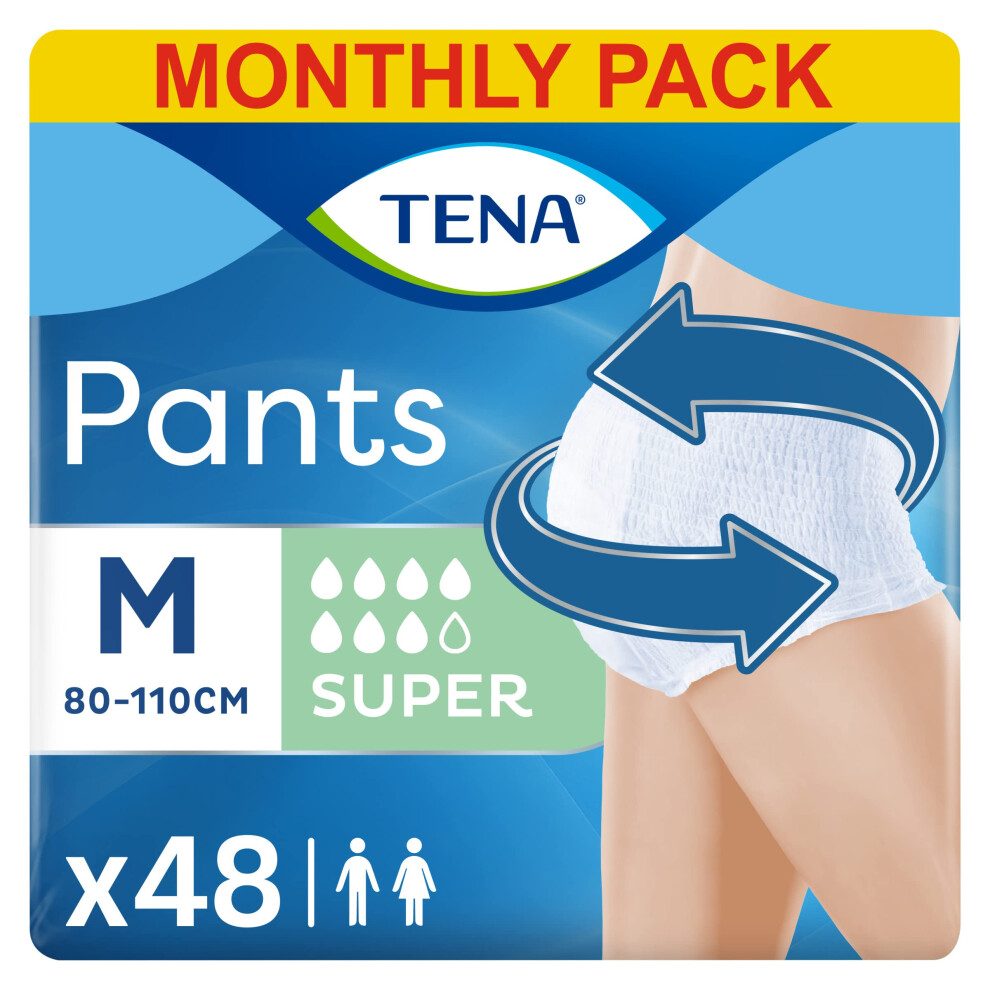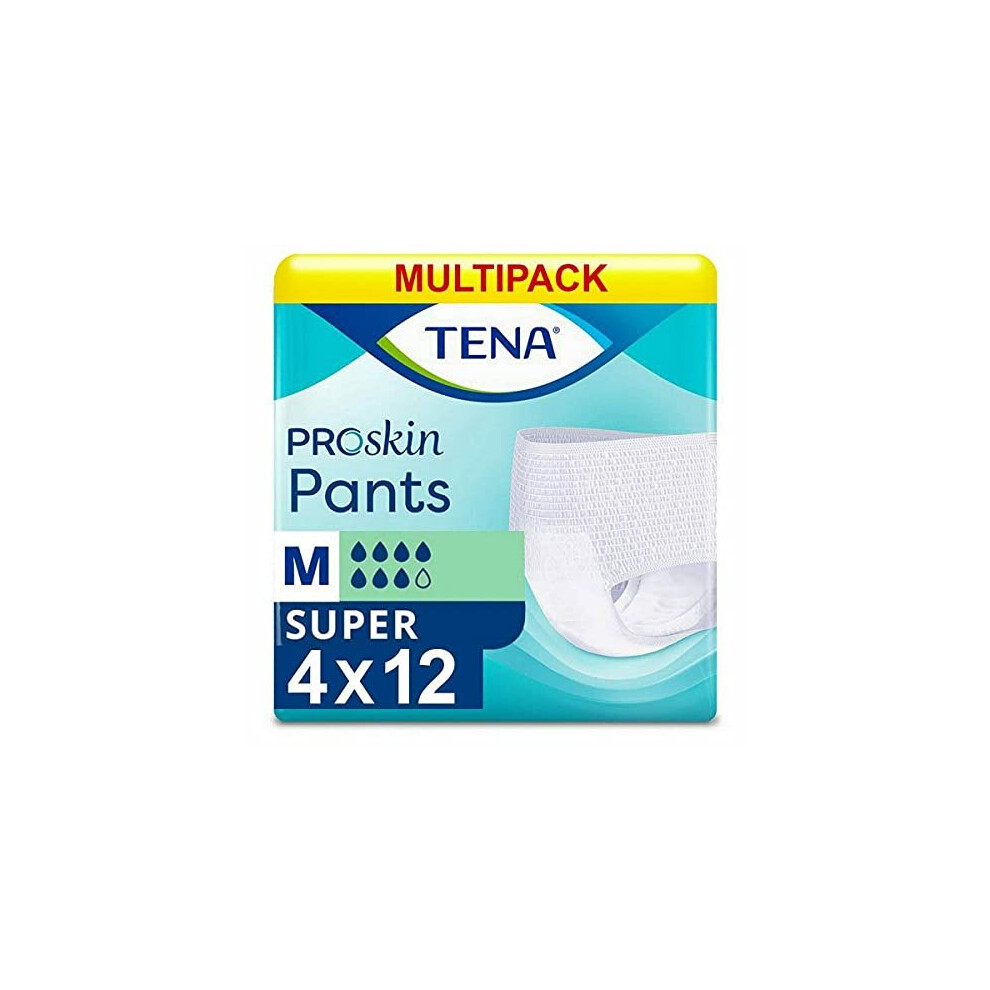 TENA Pants Super, 48 pairs of Unisex Incontinence Pants (4 x 12 packs) for Women and Men with Heavy Bladder Weakness, Medium