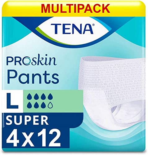 Tena TENA Pants Super, 48 pairs of Unisex Incontinence (4 x 12 packs) for Women and Men with Heavy Bladder Weakness, Size Large