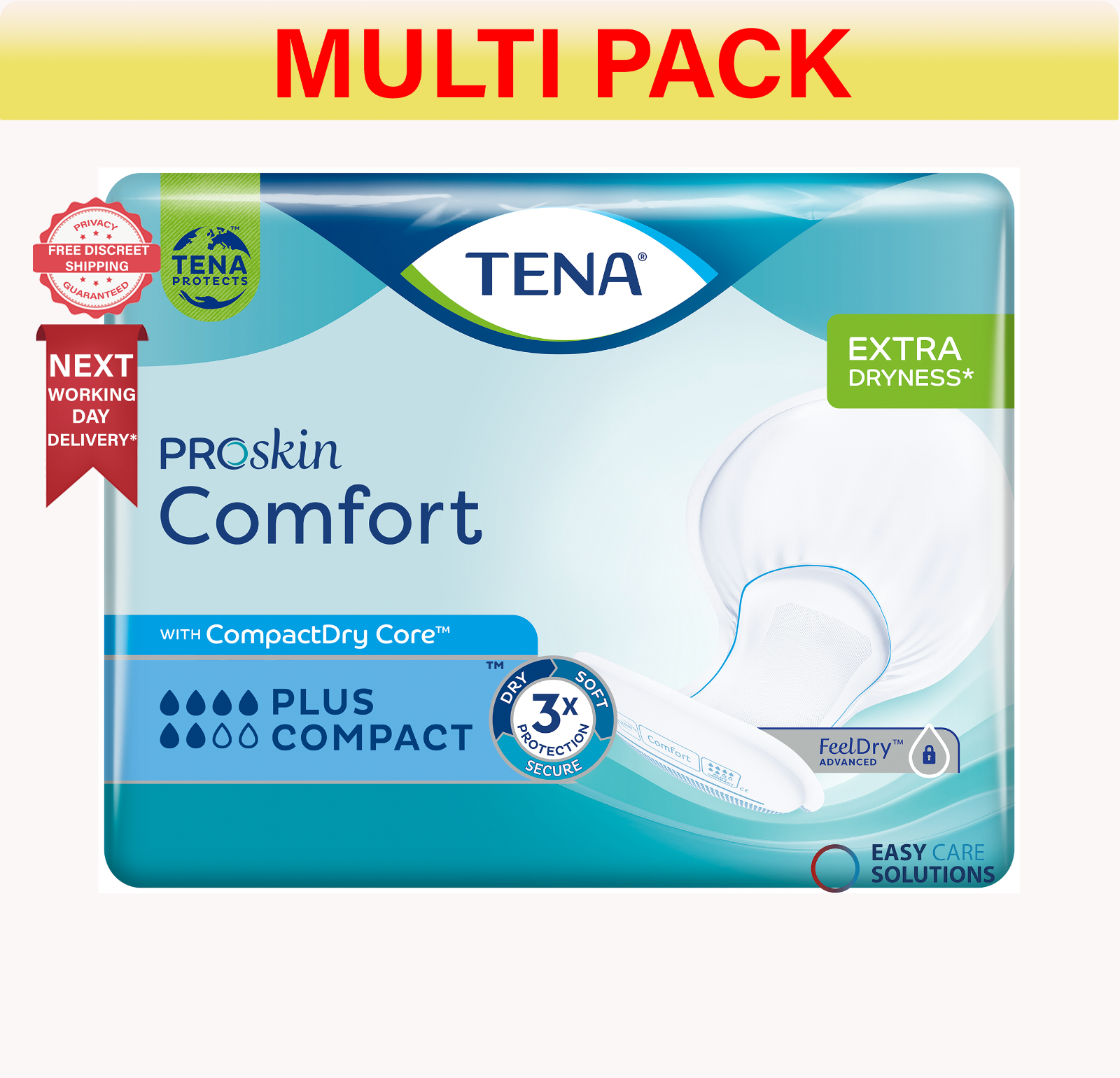 3x TENA ProSkin Comfort Plus Compact - Packs of 42 - Large Incontinence Pads