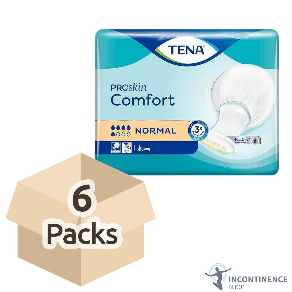 6x TENA ProSkin Comfort Normal - Pack of 42 - Large Incontinence Pads - 1200ml