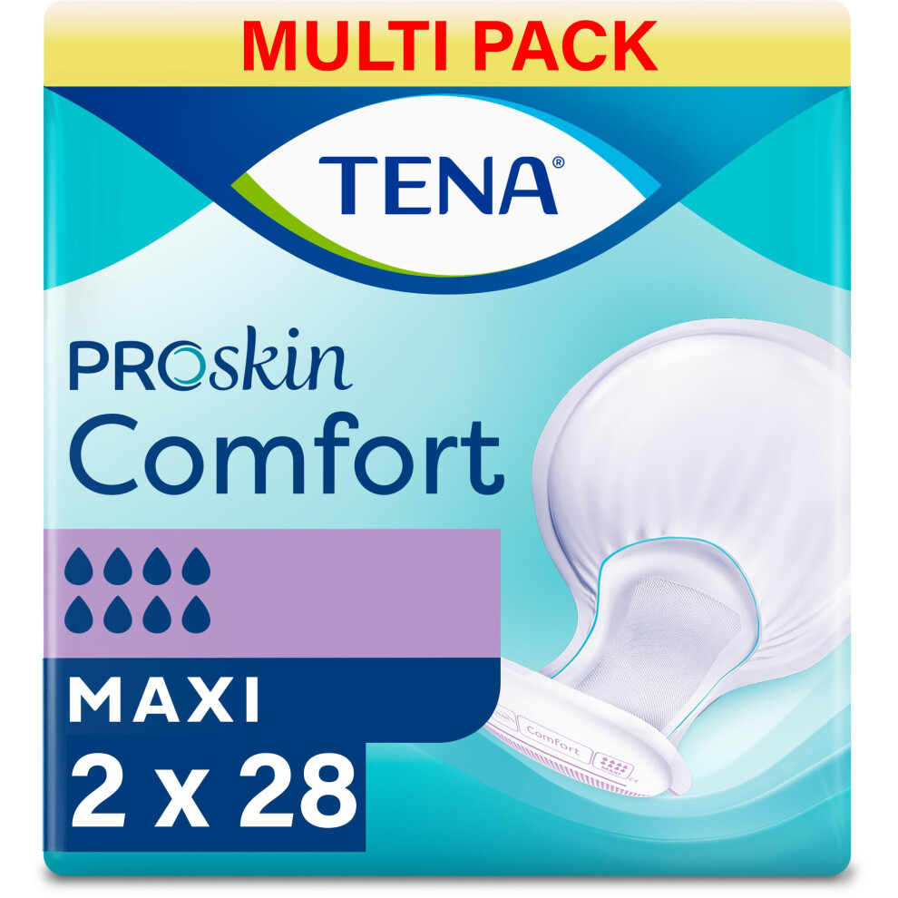 TENA ProSkin Comfort Maxi | 8 Drops of High Absorbency | Incontinence Pads | 2 Pack of 28