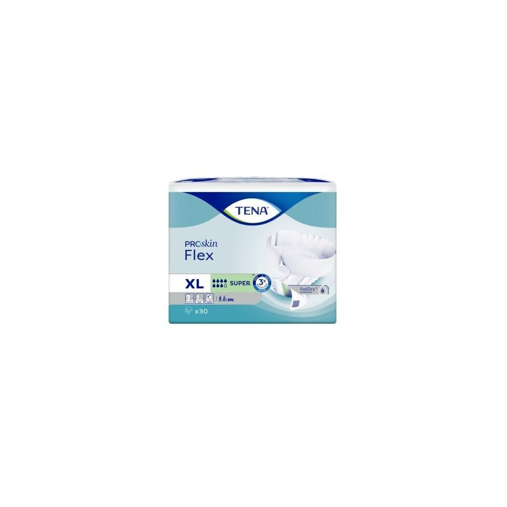 TENA ProSkin Flex Super | Size Extra Large | 7 Drops High Absorbency | Incontinence Slips | All in One Slips | 3 Pack of 30