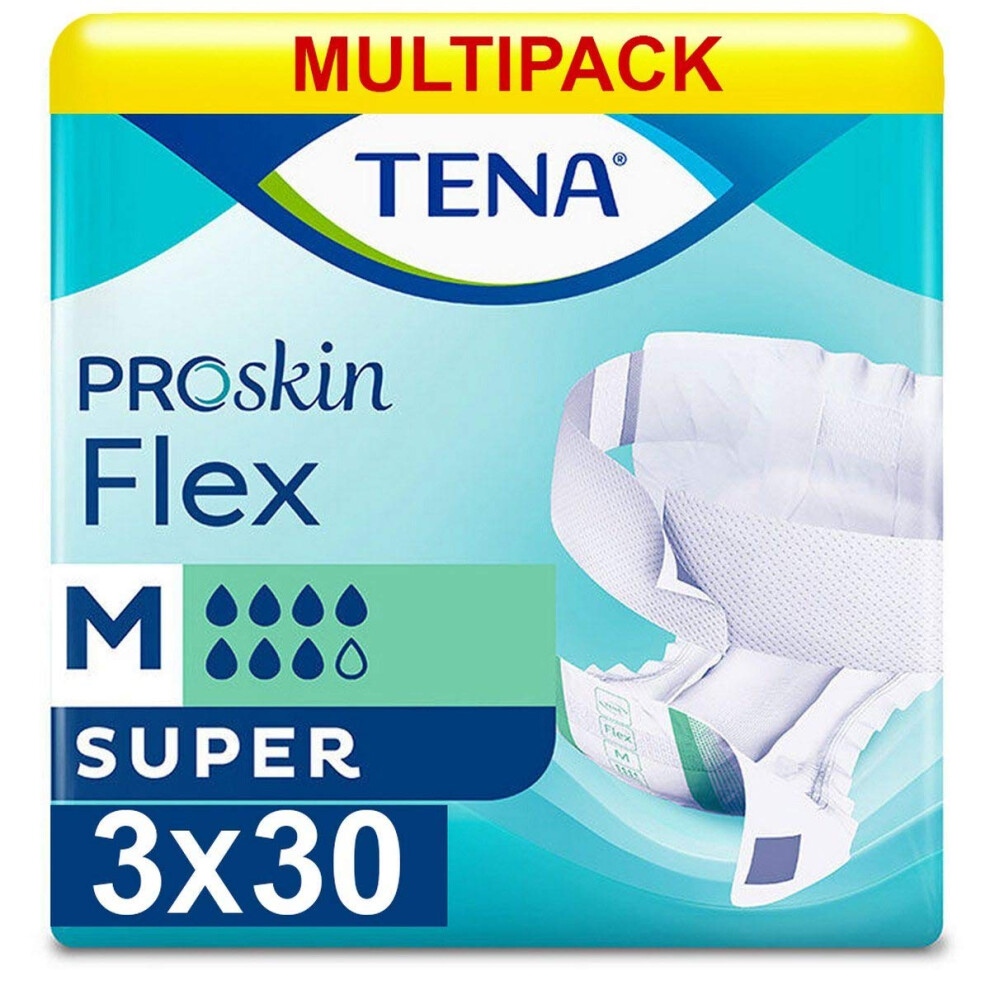 90 x TENA ProSkin Flex Super - Medium - Incontinenece Flex - 3 Packs of 30