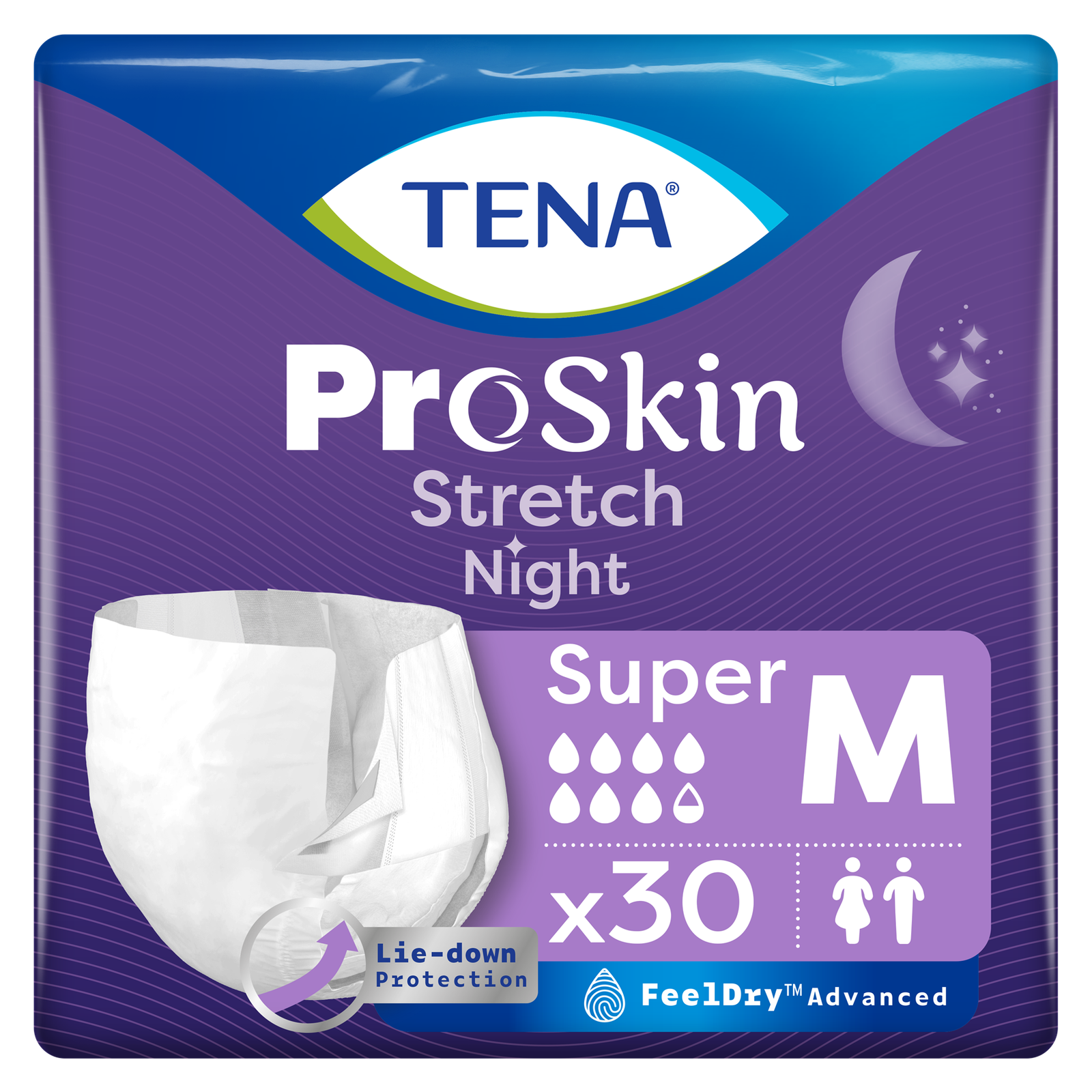 30 x TENA ProSkin Super Stretch Pull-Up Briefs | Night | Medium | 1 Pack of 30
