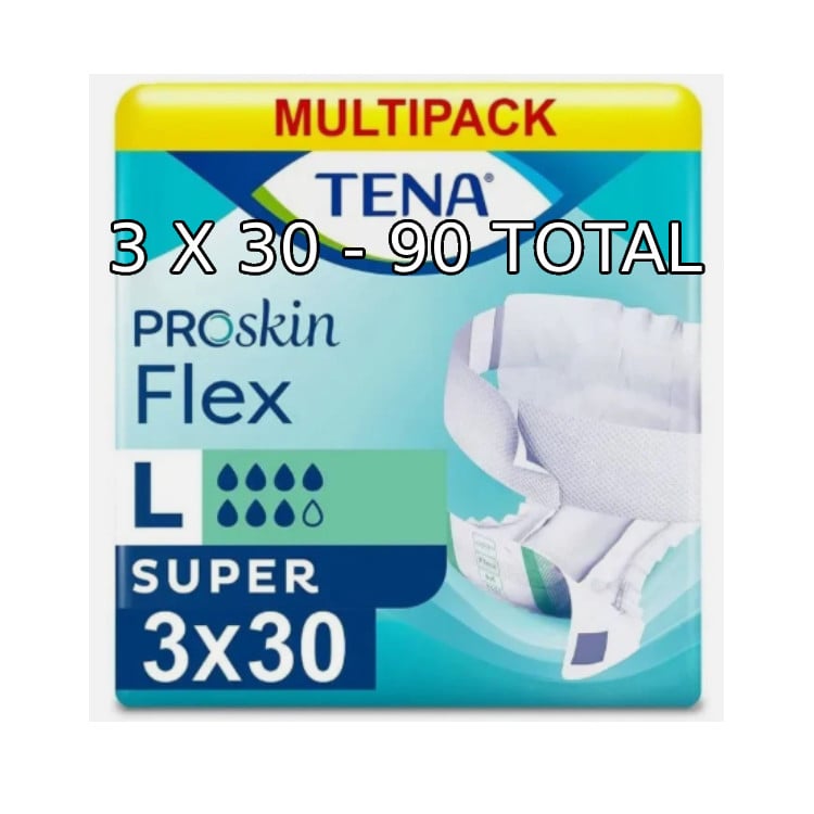 90 x TENA ProSkin Flex Super - Large - ( 3 Packs of 30 - 90 TOTAL)