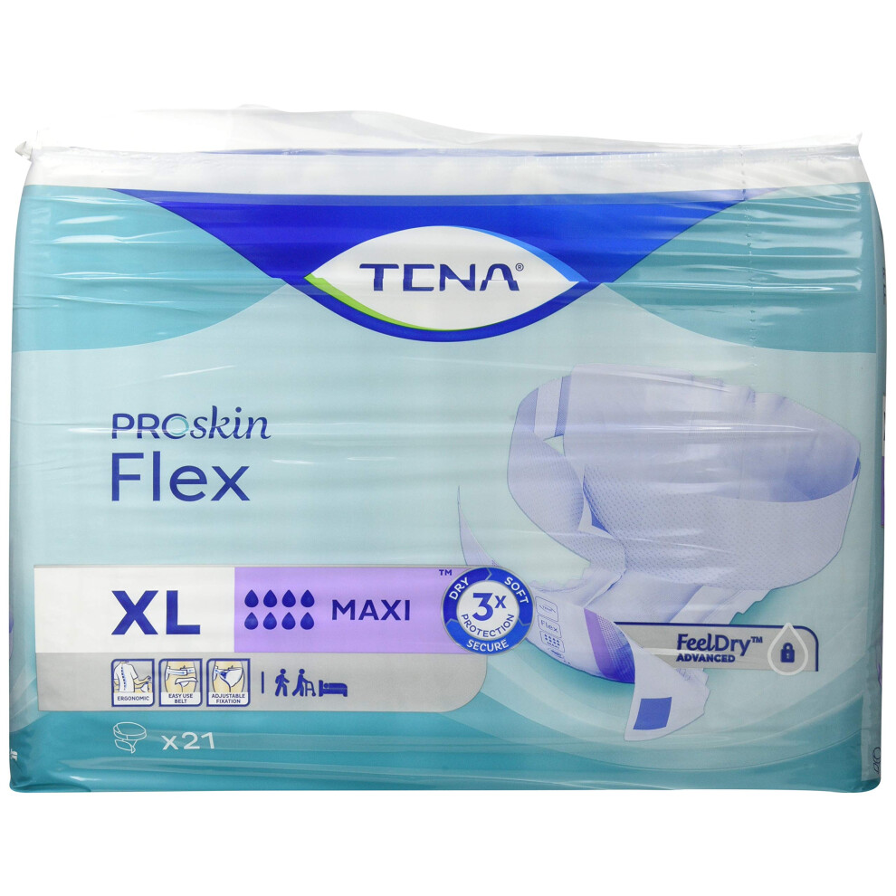 TENA ProSkin Flex Maxi | Size Extra Large | 8 Drops High Absorbency | All-in-one Slips | 3 Pack of 21