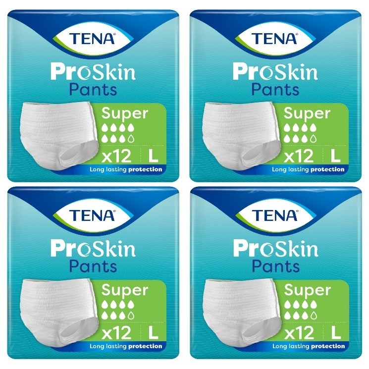 TENA ProSkin Pants Super - Large - Pull Up Incontinence Pants 4 x Packs of 12