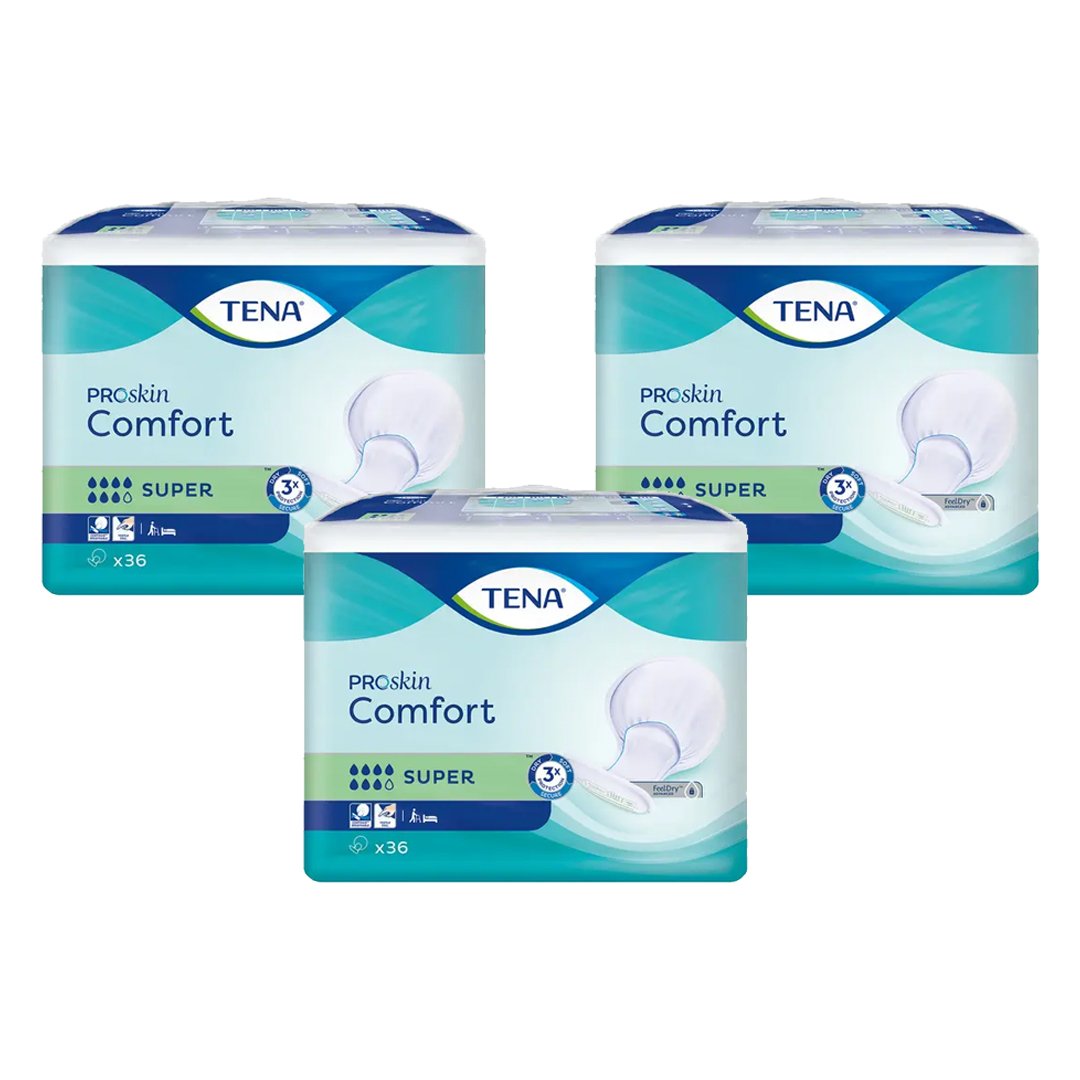 3 X 36 Pack TENA Proskin Comfort Super - 102 Incontinence Pads