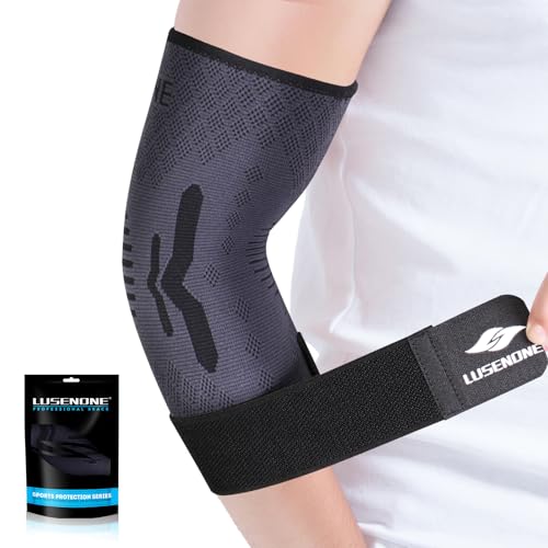 Lusenone Elbow Support with Strap for Women/Men, Elbow Compression Sleeve, Adjustable Tennis Elbow Brace Support for Tennis/Golfers Elbow, Tendonitis, Arthritis Relief, Weightlifting, Gym, L