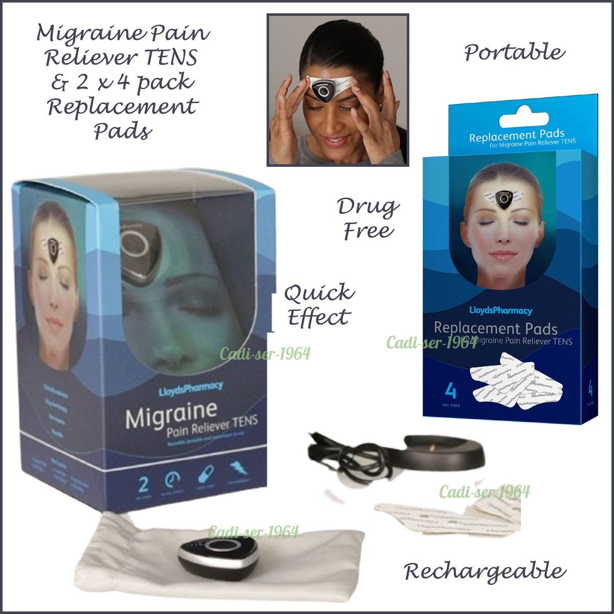 Lloyds Pharmacy Migraine Pain Reliever TENS Machine & Replacement Pads NEW
