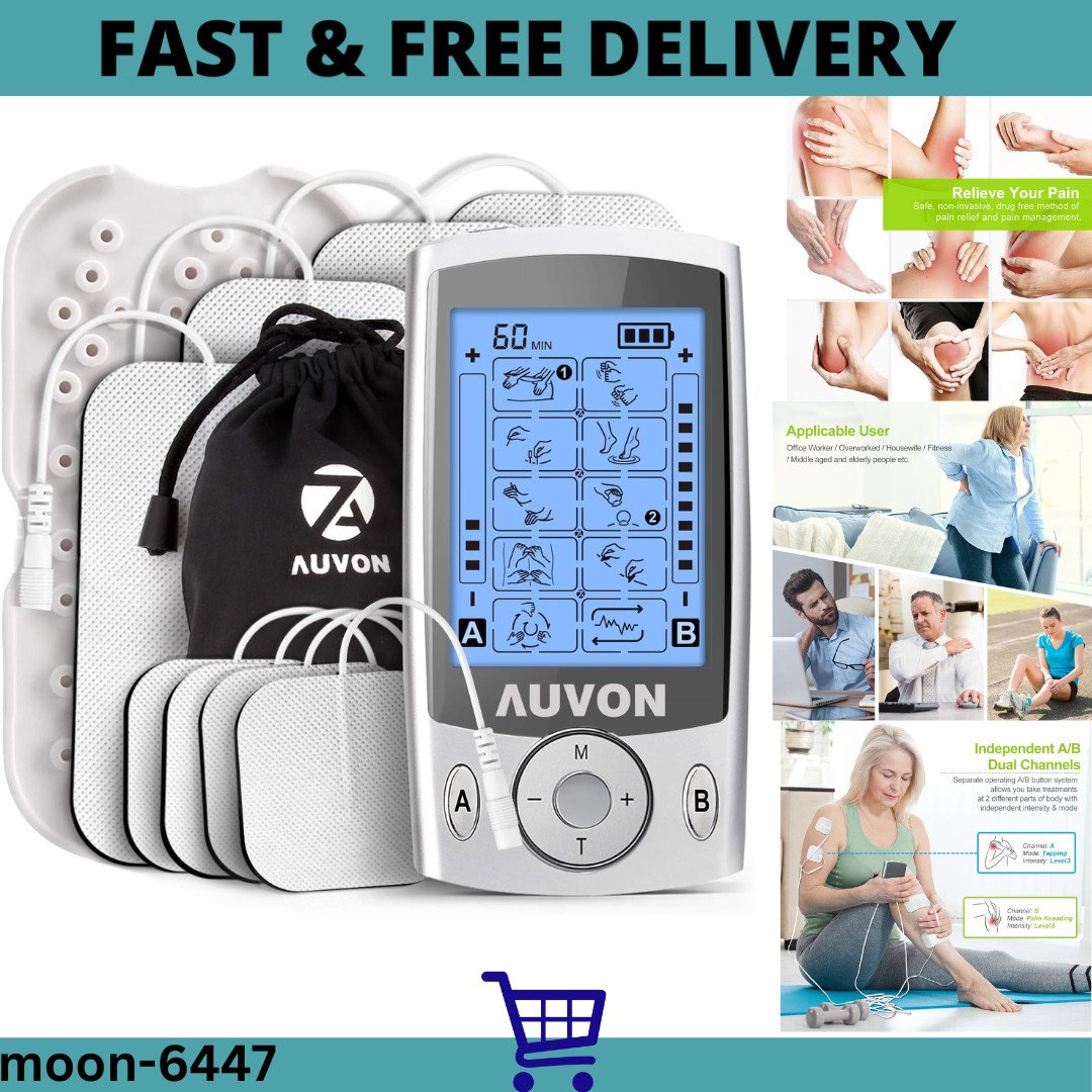 AUVON Dual Channel TENS Machine for Pain Relief, Unit Muscle A-silver