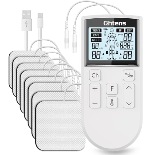 TENS Machine for Pain Relief – GHTENS Rechargeable EMS Unit with 5 Modes, 80 Programs, Dual Channels & 8 Electrode Pads for Back, Sciatica, Shoulder Pain