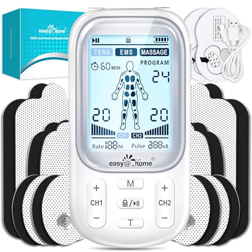 Easy@Home Tens Machine EMS: TENS Machine for Pain Relief EMS Muscle Stimulator for Back Pain | Back Massage Machine for Pain | Arthritis Pain Relief | Dual Channel 24 Modes 16 Pads Replacements