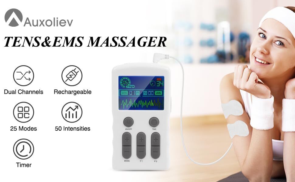 AUVON Rechargeable TENS Machine Muscle Stimulator for Pain Relief, TENS Unit wit