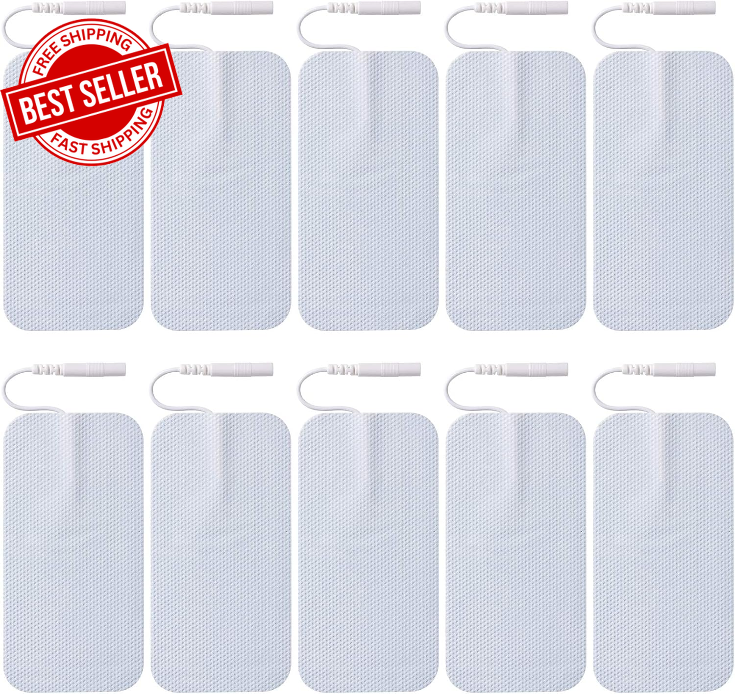 LiteTour 10 Pieces Large Electrode Pads for TENS Unit Replacement Pads for TENS Machine 2mm PIN Connector - 2x4 Inches Self-Adhesive Electrodes