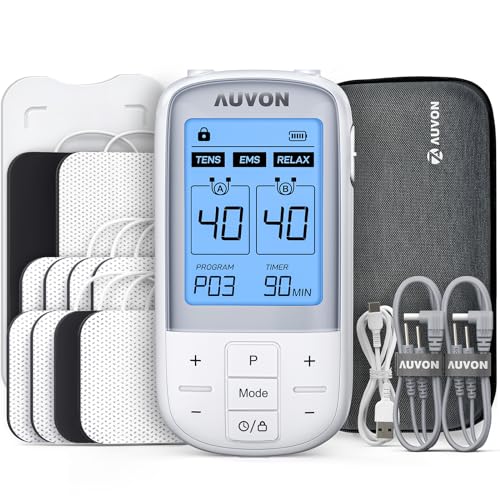 AUVON 3-in-1 TENS Machine for Pain Relief with 32 Modes & 40 Intensities, Dual Channel TENS Unit Muscle Stimulator & EMS, Relax Machine with EVA Travel Case, 10 Pcs TENS Unit Electrodes Pads