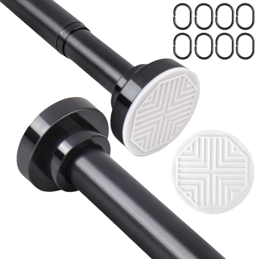 Shower Curtain Pole 83-168cm Stainless Steel Shower Curtain Rod Tension Rod for Curtains No Drill Extendable Curtain Poles Shower Curtain Rail for Bathroom Bedroom Kitchen Wardrobe, Black