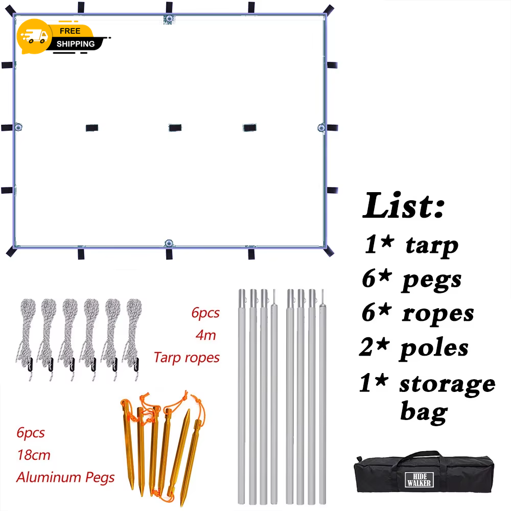 Waterproof Camping Tarp Tent 3x3/3x4/4x4 Sun Shelter Awning 19-Point Survival