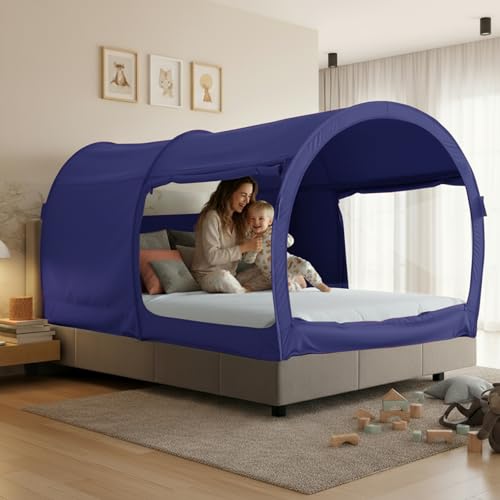 LEEDOR Bed Tent Dream Tents Bed Canopy Shelter Cabin Indoor Privacy Warm Breathable Pop Up Full Size for Kids and Adult Patent Pending Navy(Mattress Not Included)