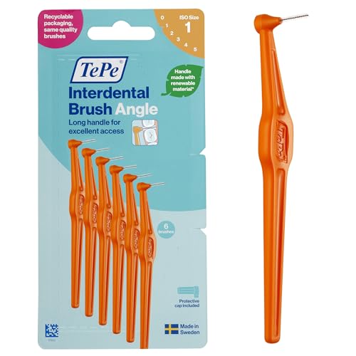 TePe Interdental Brush Angle, Orange, 0.45mm/ISO 1, 6pcs, Interspace Cleaning, Plaque Remover for Teeth with Narrow Gaps, ensures Strong Gums, Carton Pack