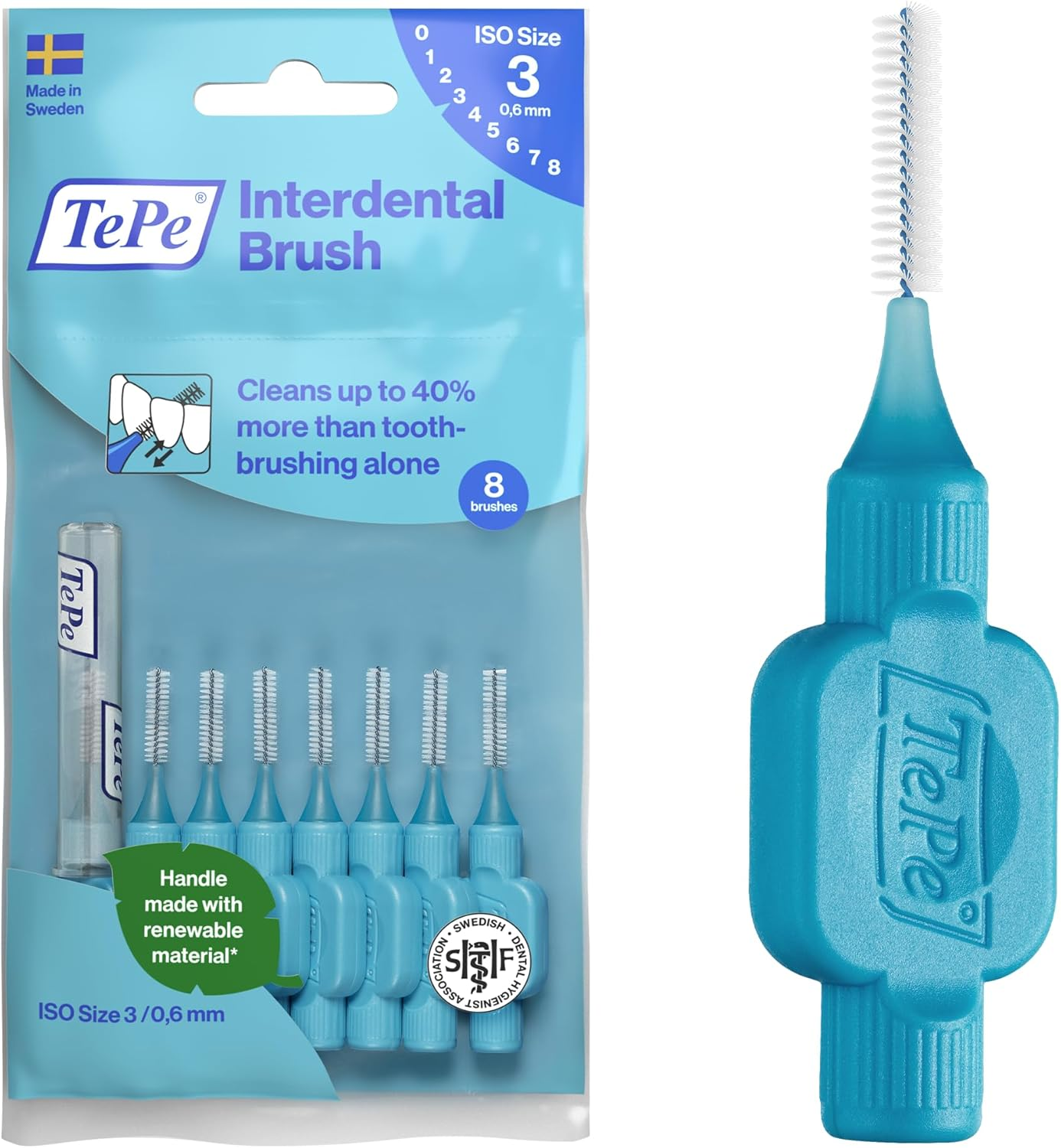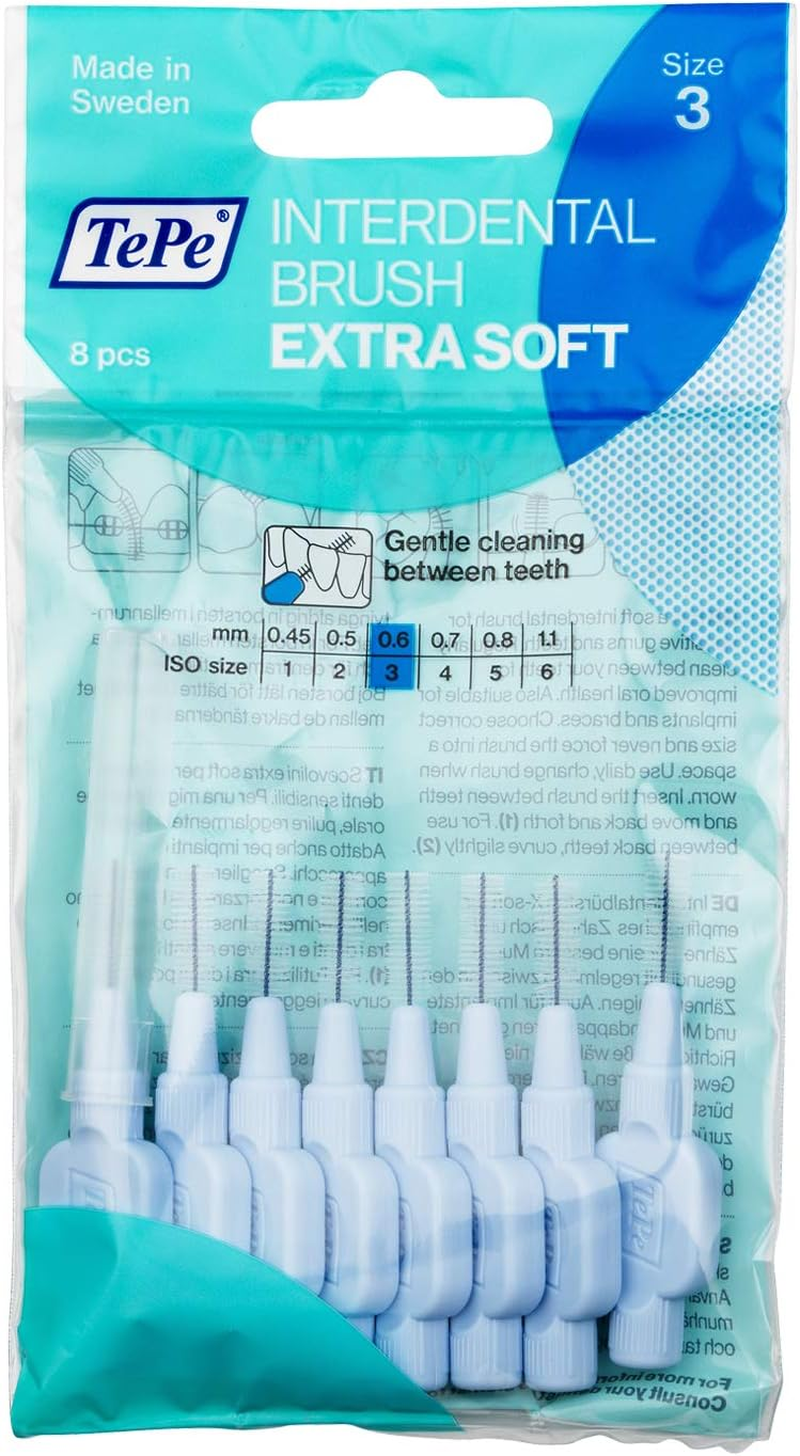 Tepe Interdental Brush, Extra Soft, Blue, 0.6Mm/Iso 3, 8Pcs, Plaque Removal, Eff