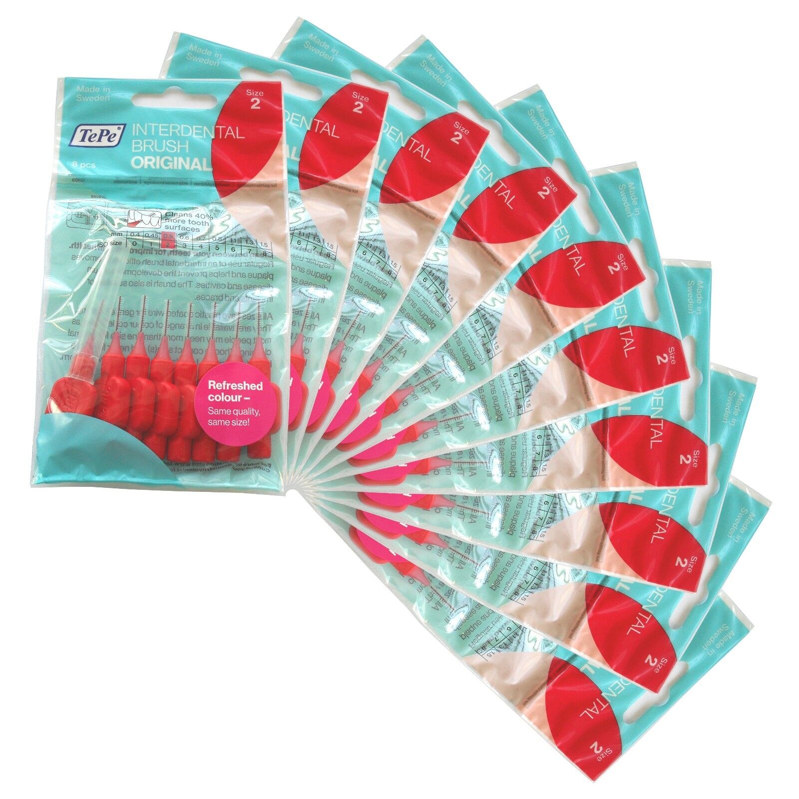 TePe Interdental Brush, Original, Red, 0.5mm/ISO 2, 8pcs, efficient Cleaning Bet