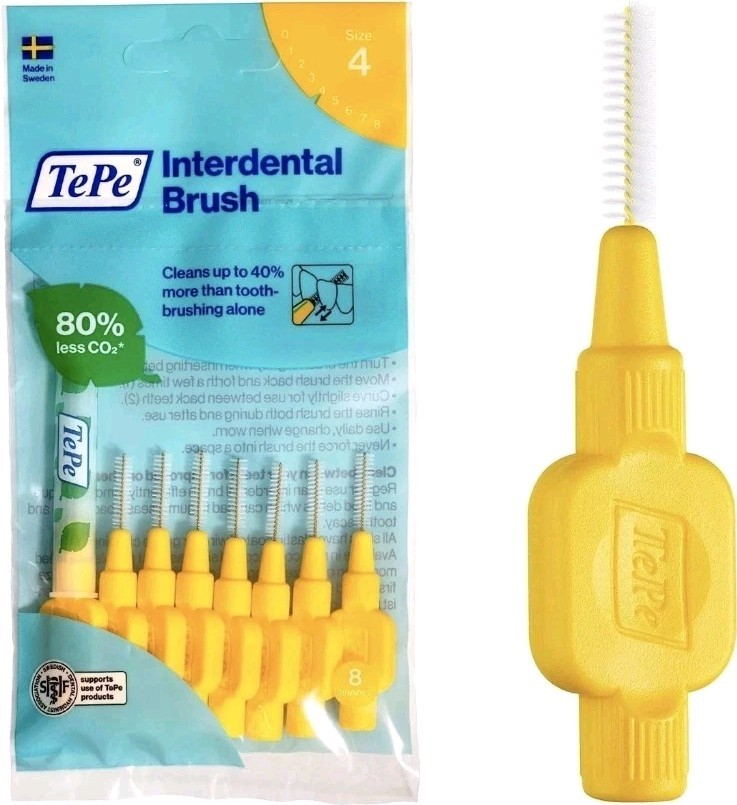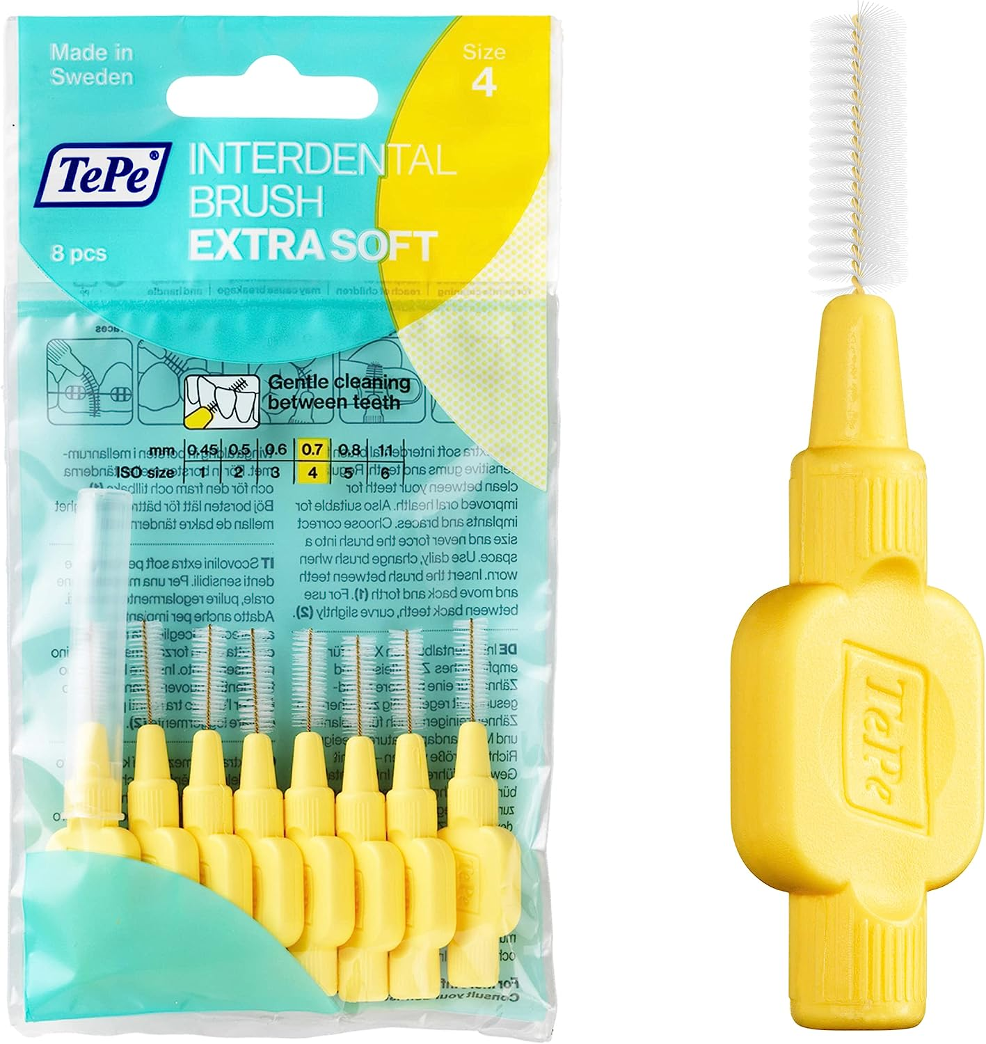 Tepe Interdental Brush, Extra Soft, Yellow, 0.7Mm/Iso 4, 8Pcs, Efficient Cleanin