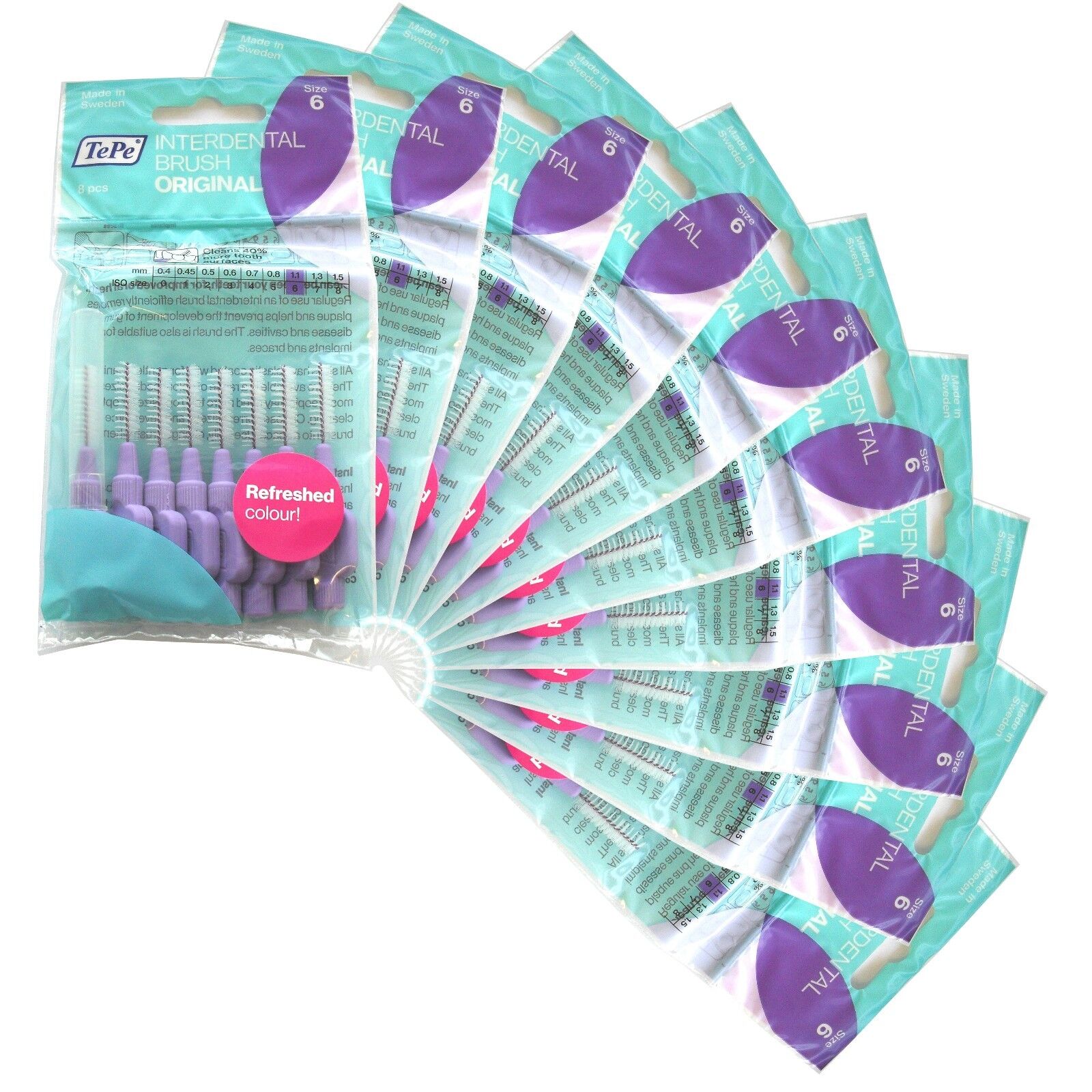 TEPE Interdental brush 1.1mm 10 PACK of 8 BRUSHES PURPLE