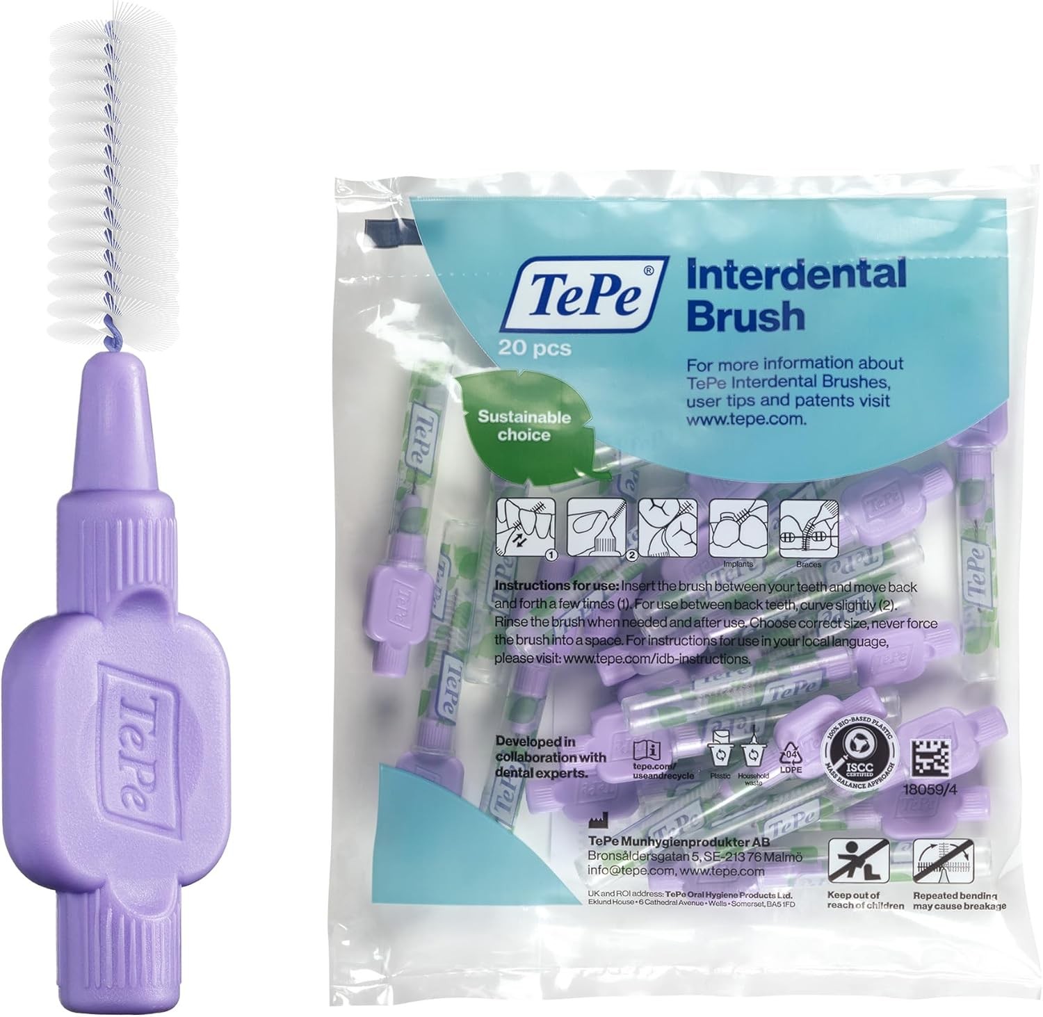 TePe Interdental Brush, Extra Soft, Purple, 1.1mm/ISO 6, 20pcs, Plaque Removal,