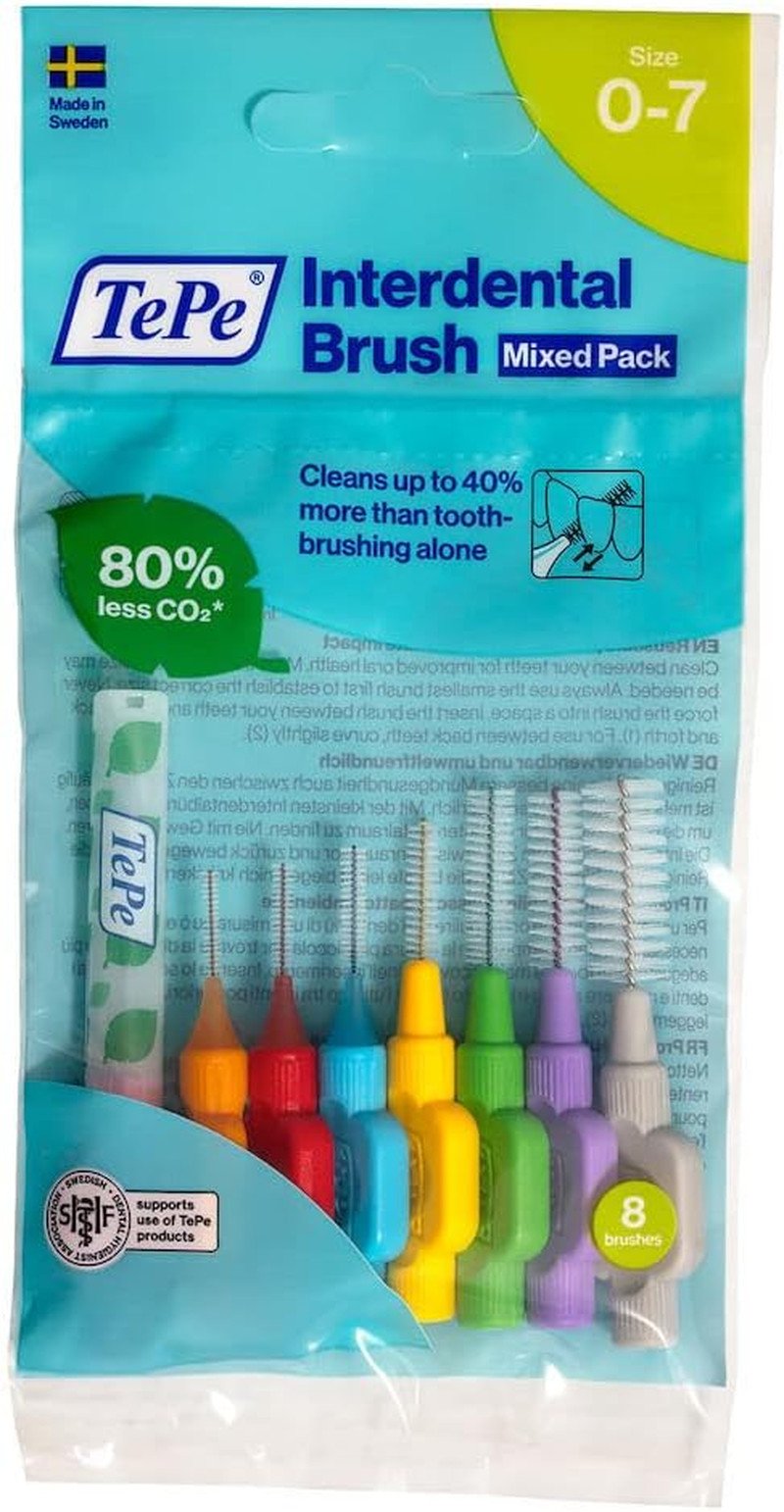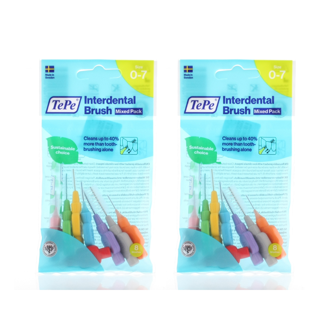 2 x TEPE INTERDENTAL BRUSH MIXED PACK 8 PIECES SIZE 0-7 - FREE SHIPPING