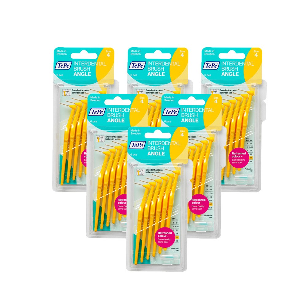 TePe Interdental Brush Angle, Yellow, 0.7mm/ISO 4, 6pcs, Plaque Remover, Easy and efficient Cleaning Between Teeth, Tooth Floss for Small Gaps