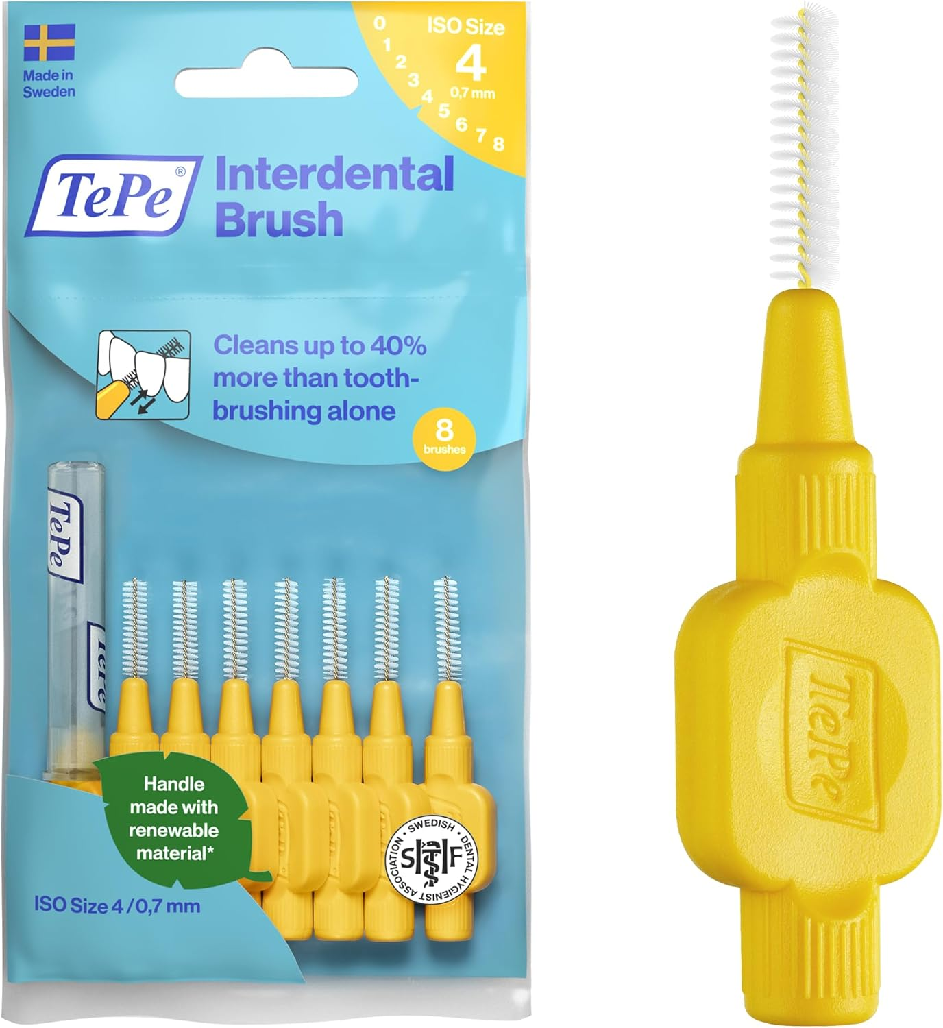 TePe Interdental Brush, Original, Yellow, 0.7mm/ISO 4, 8pcs, efficient Cleaning