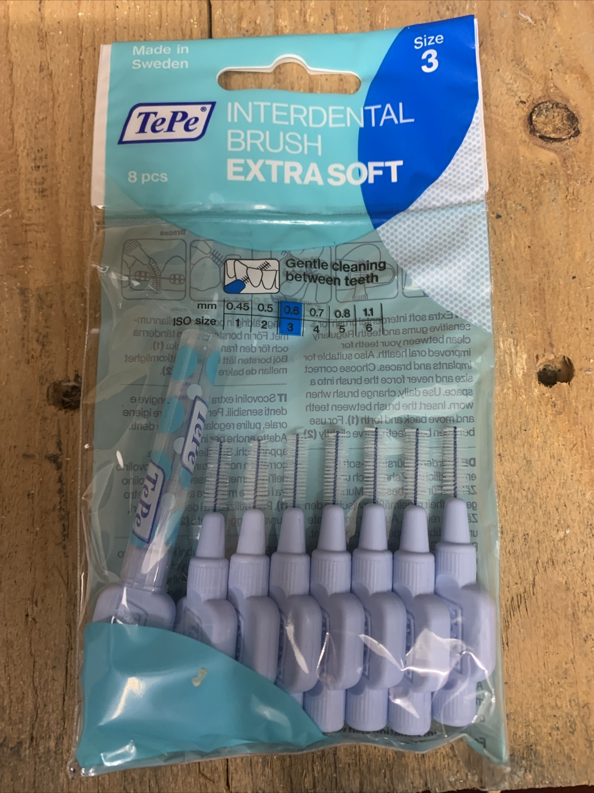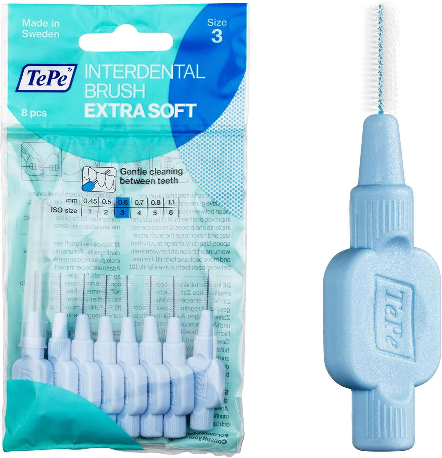 TePe Interdental Brush, Extra Soft, Blue, 0.6mm/ISO 3, 8pcs, Plaque Removal, eff