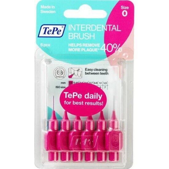 6x TePe Interdental Brush 0.4mm Pink Plaque Removal Oral Care