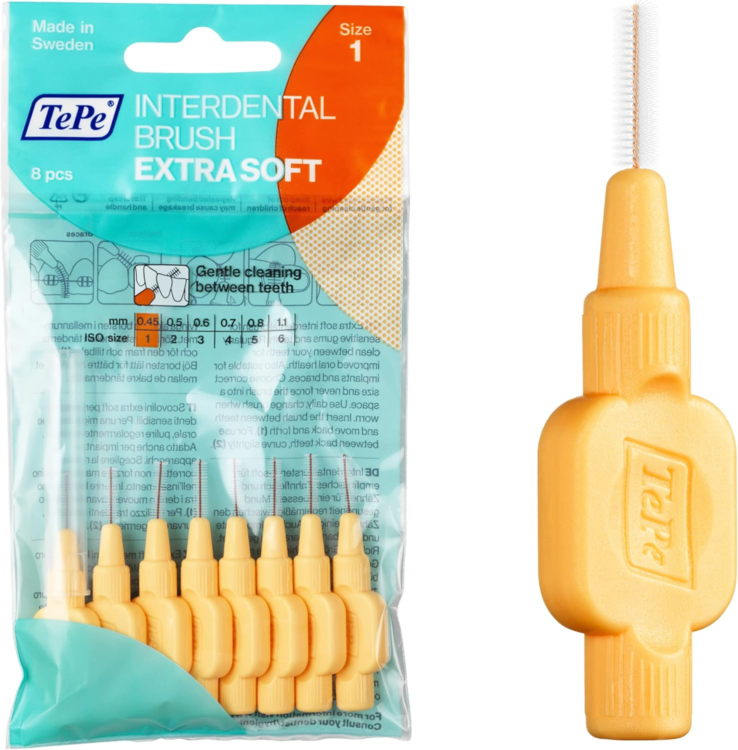 Tepe Interdental Brush, Extra Soft, Orange, 0.45Mm/Iso 1, 8Pcs, Teeth Cleaning P