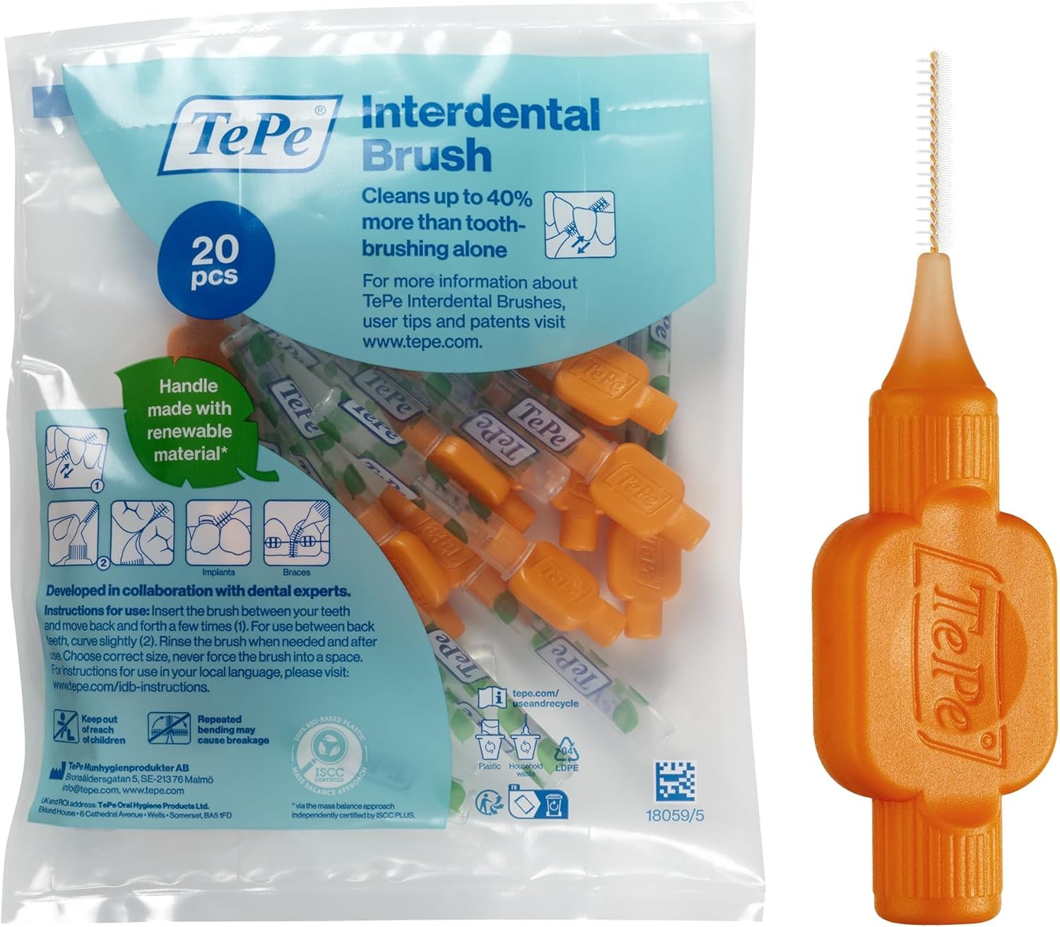 Tepe Interdental Brush, Extra Soft, Orange, 0.45Mm/Iso 1, 20Pcs, Teeth Cleaning