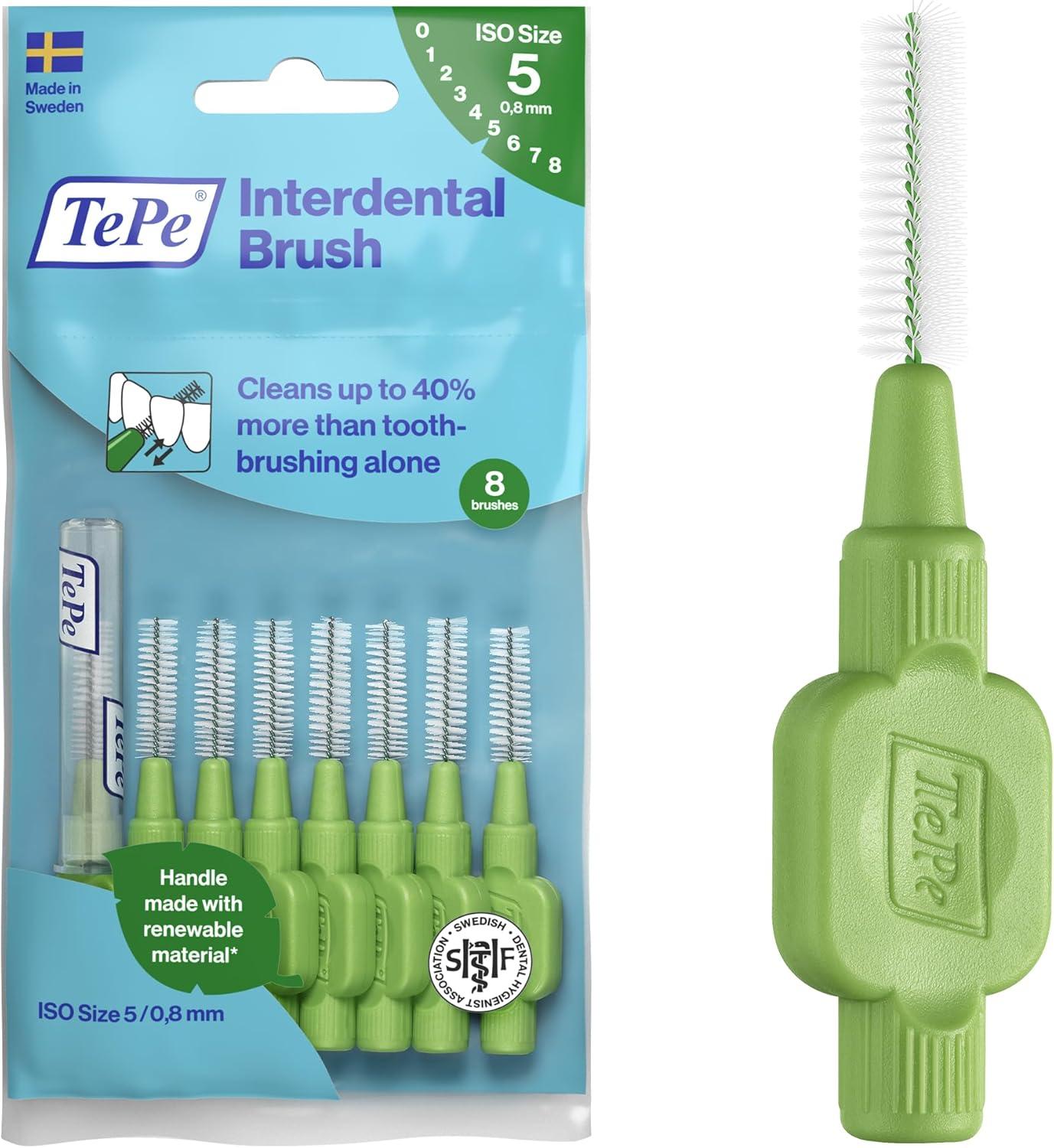 Tepe Interdental Brush, Original, Green, 0.8Mm/Iso 5, 8Pcs, Plaque Removal, Eff