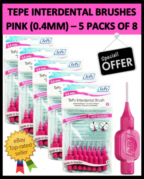 PINK TEPE INTERDENTAL BRUSHES 0.4MM (40 BRUSHES) REMOVES DENTAL PLAQUE