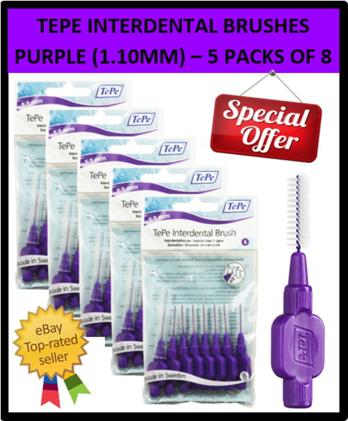 PURPLE TEPE INTERDENTAL BRUSHES 1.1mm (40 BRUSHES) REMOVES DENTAL PLAQUE