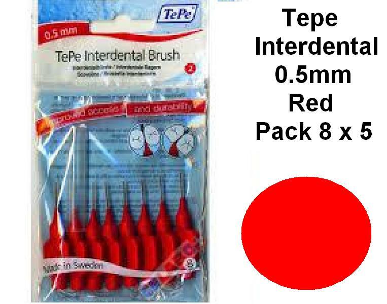 RED TEPE INTERDENTAL BRUSHES 0.5MM (40 BRUSHES) REMOVES DENTAL PLAQUE