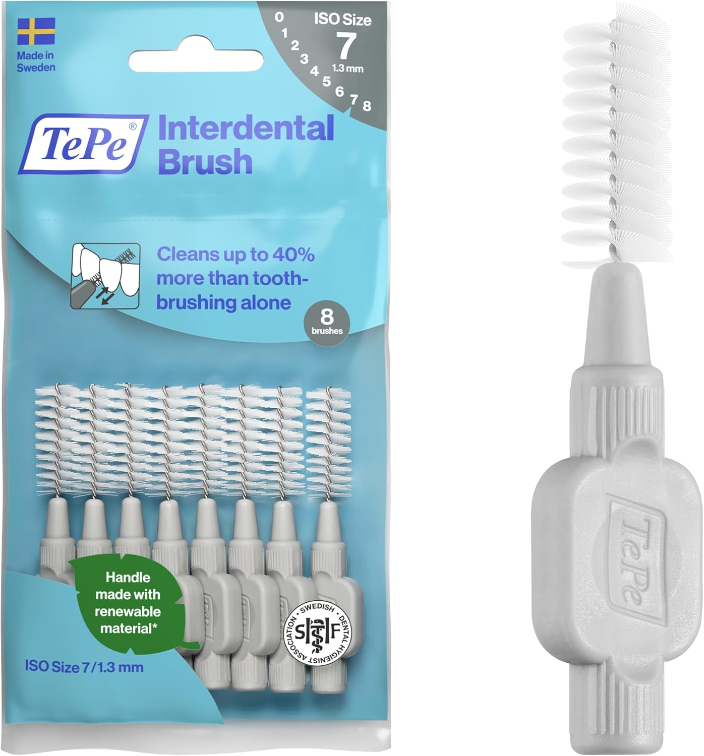 TePe Interdental Brush Packs of 8 Grey 1.30mm - Clean 40% More Tooth Surface