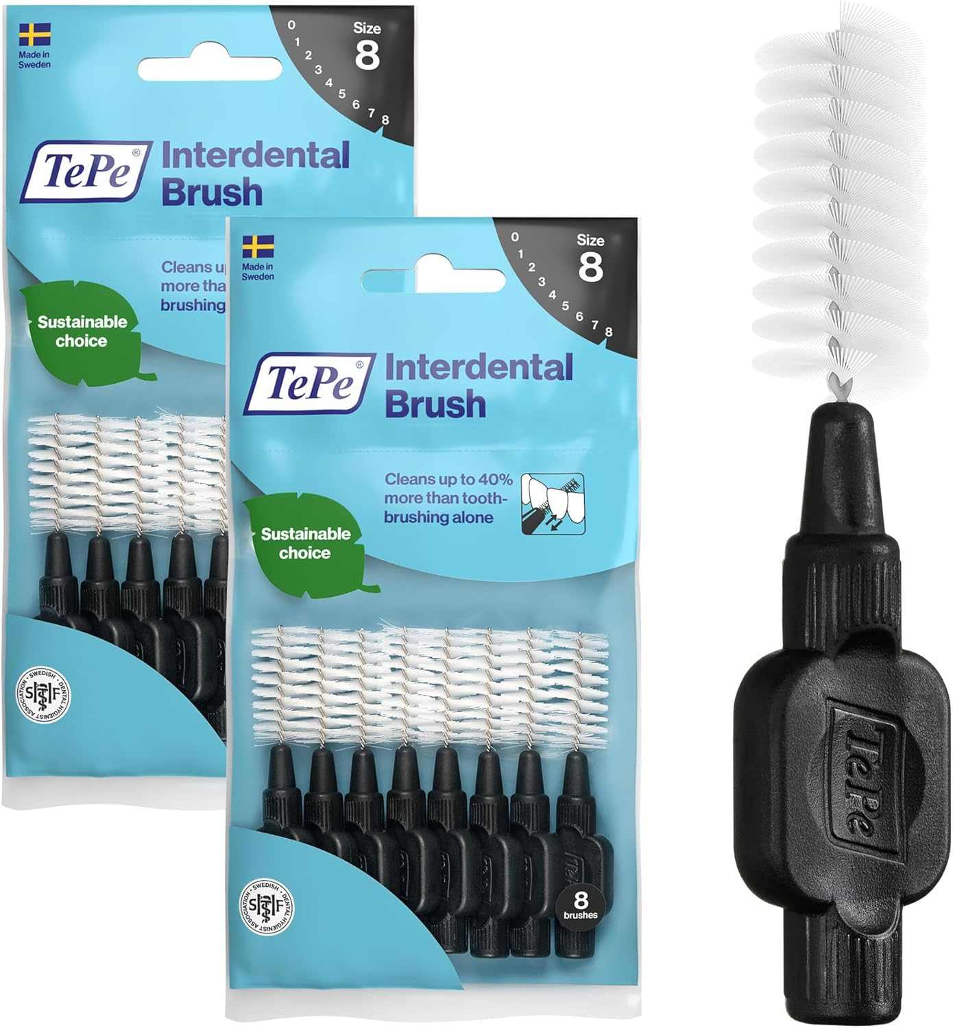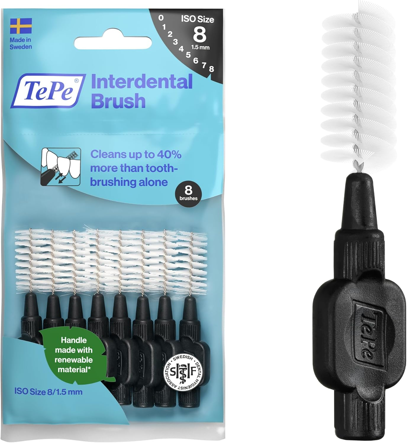Tepe Interdental Brush, Original, Black, 1.5Mm/Iso 8, 8Pcs, Plaque Removal, Effi