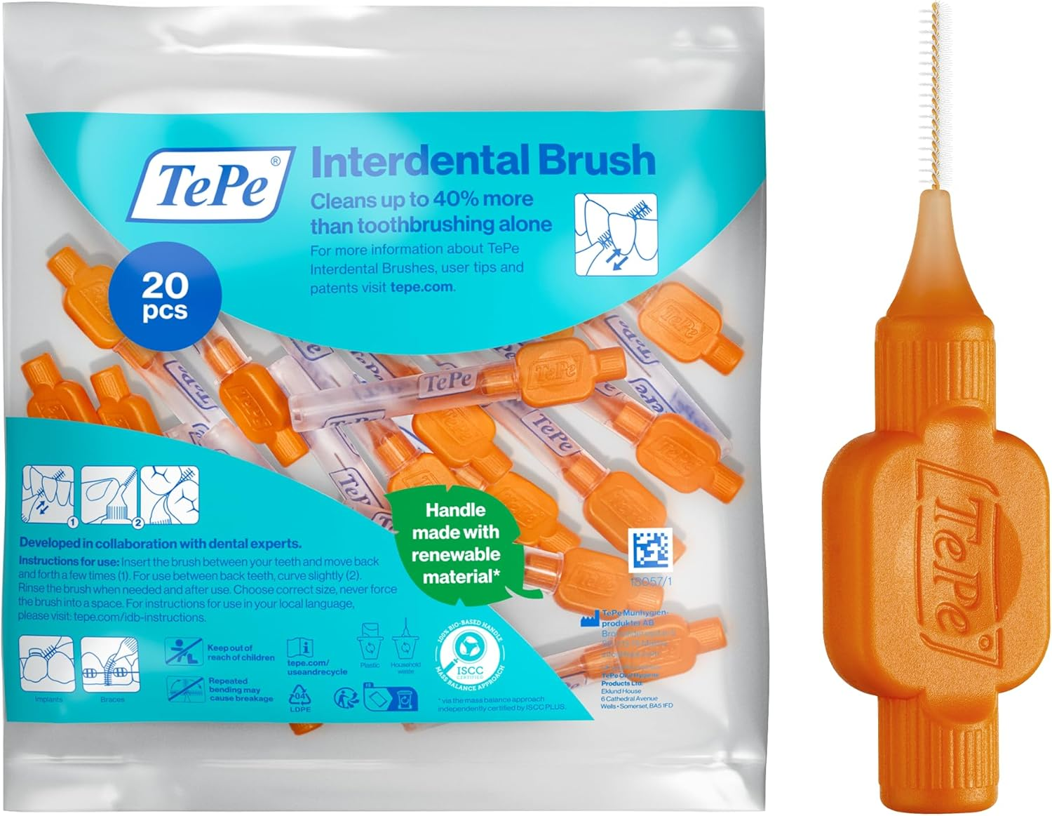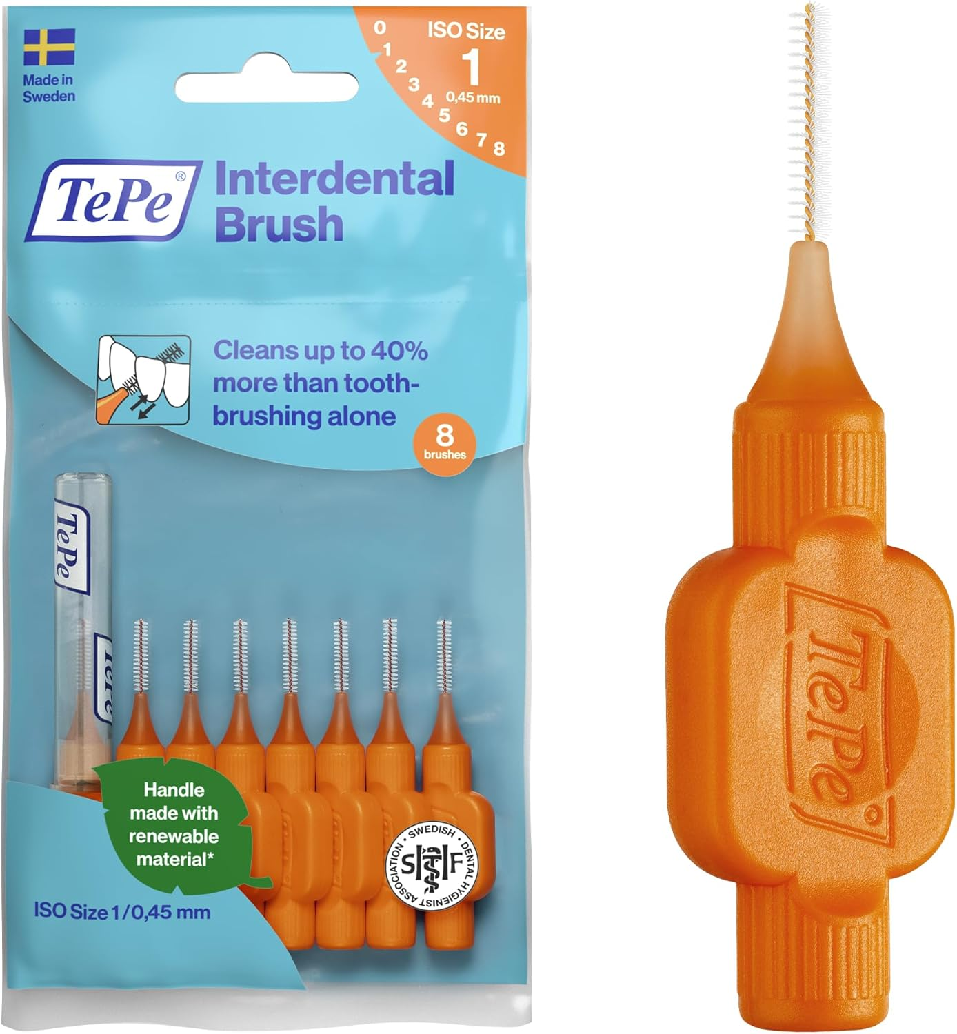 Tepe Interdental Brush, Original, Orange, 0.45Mm/Iso 1, 20Pcs, Plaque Removal, E